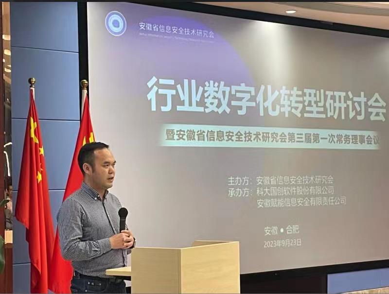由安徽省信息安全技术研究会主办的“行业数字化转型研讨会暨安徽省信息安全技术研究会第三届第一次常务理事会议”于2023年9月23日在合肥召开。邀请了来自各行业的专家、部分会员单位及生态合作伙伴60余人参加了交流研讨,共同探讨和分享他们在数字化转型过程中的经验和挑战。会上,秘书长袁良平就2023年研究会工作进行了汇报。