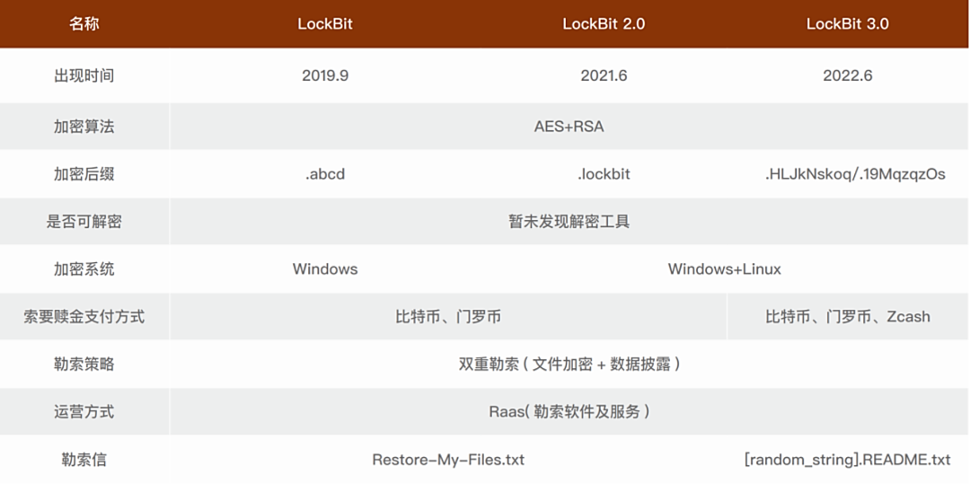 LockBit勒索软件自2019年首次出现,到2022年历经3个版本的升级迭代: